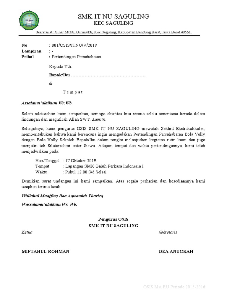 Contoh Surat Undangan Pertandingan Persahabatan Pdf